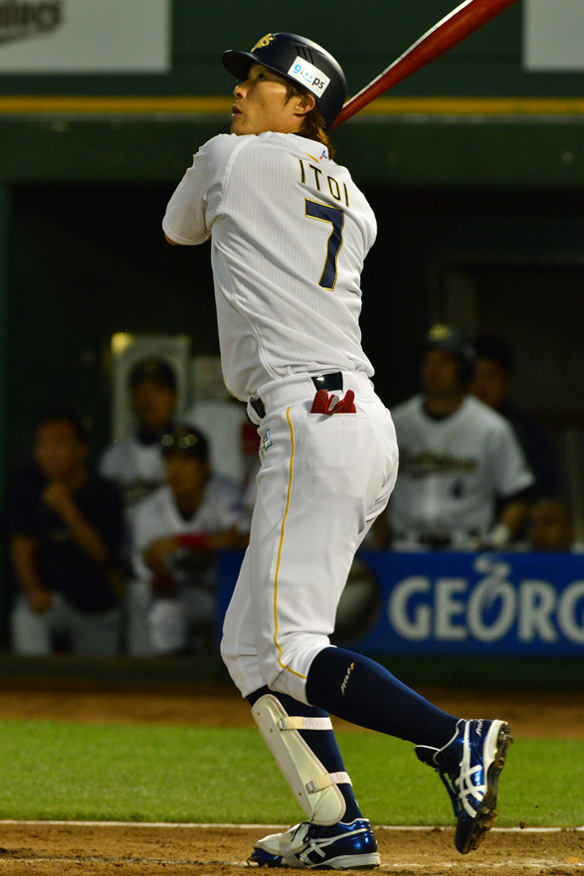 糸井選手が左越え適時二塁打を放つ