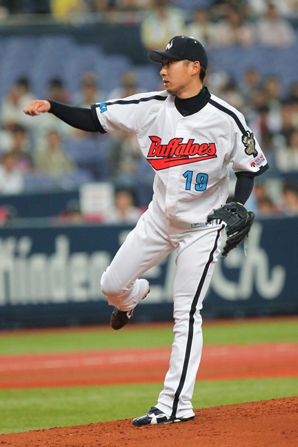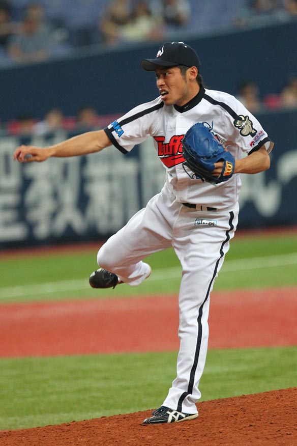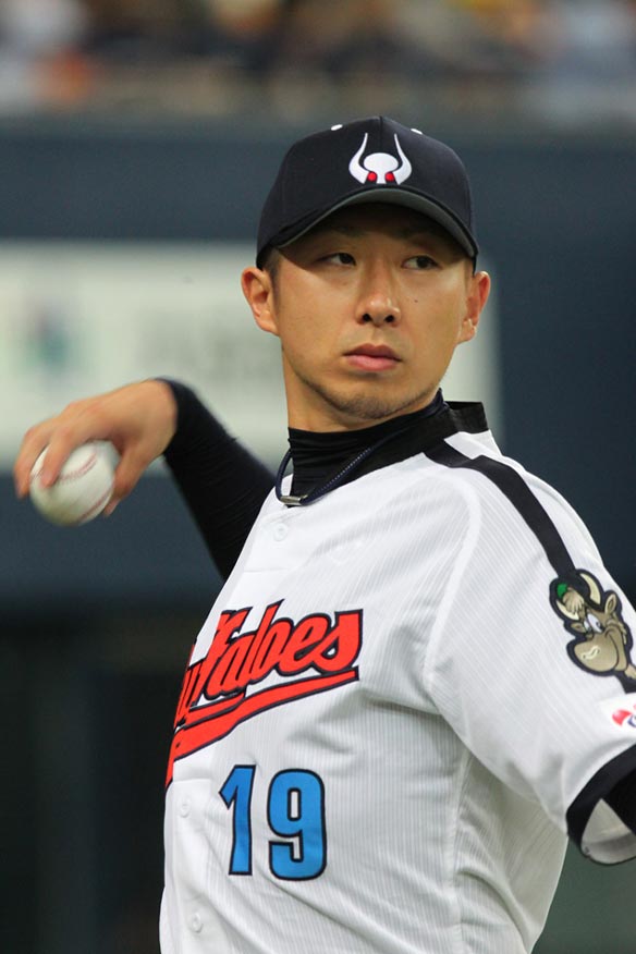 投手 金子千尋 1番 ミレッジ 三ゴ 低めのスライダーを打つもサードゴロ 1アウト |