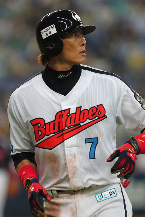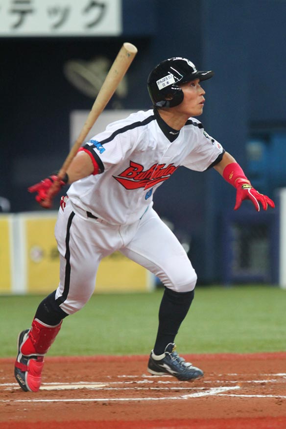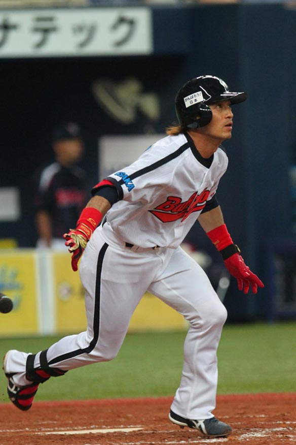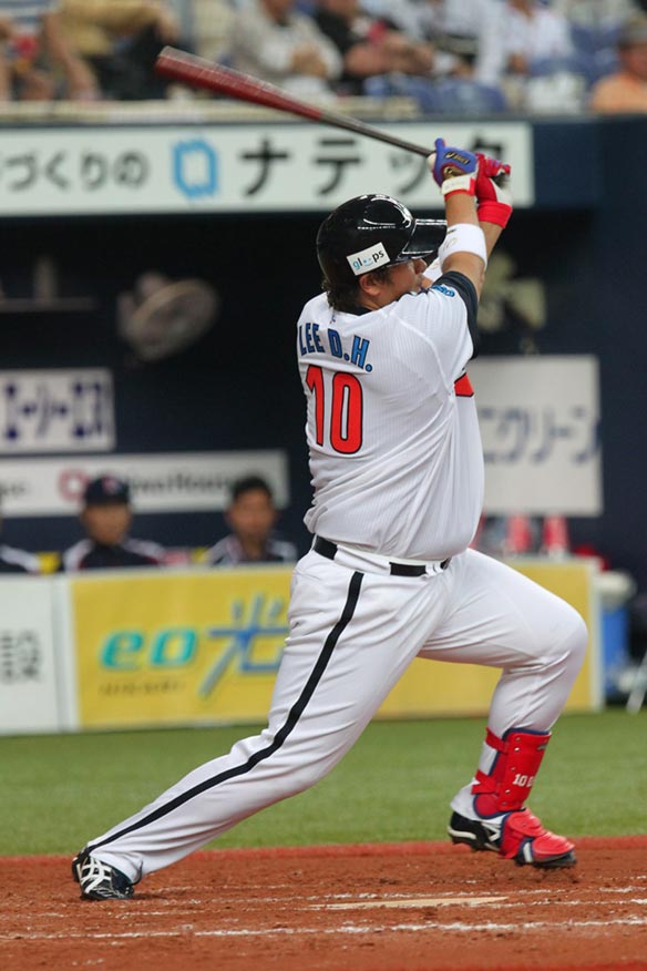 4番 李大浩 中安 センターへのヒットを放つ 1塁 |