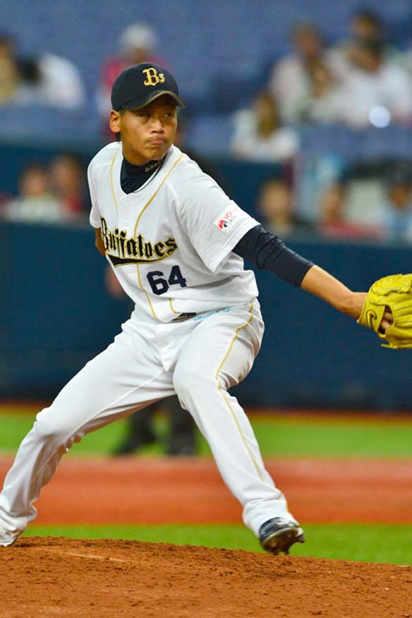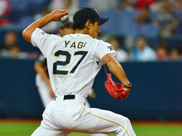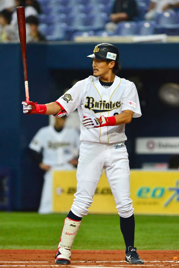 4番 今江 四球 外角のフォークボールを見送りフォアボール。オリックス、満塁のピンチをまねく 満塁 |