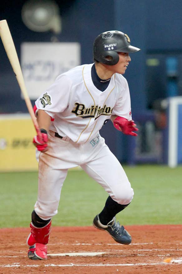 投手 岸田 5番 サブロー 左安 レフトへのヒットを放つ 1塁 |