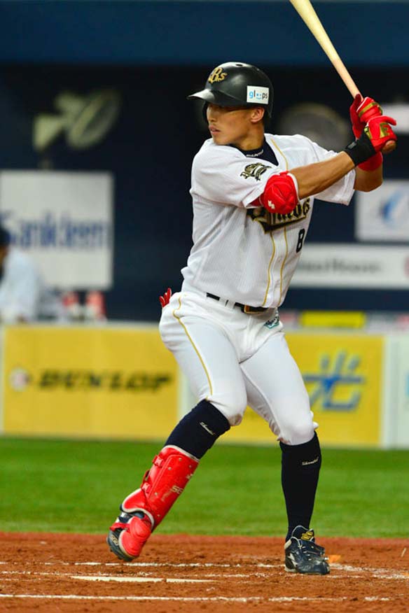 李大浩選手が1塁線を破る2ベースヒットを放つ