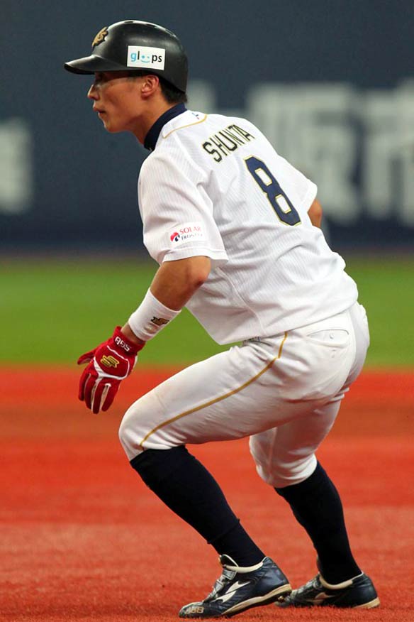 3番 銀次 中安 センターへのヒットを放つ 1塁 |