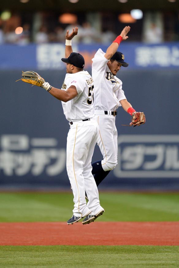 6番 バルディリス 中安 ランナー1,3塁の1-0からセンターへのタイムリーヒット オ2-0楽 1,2塁 ![]() 2