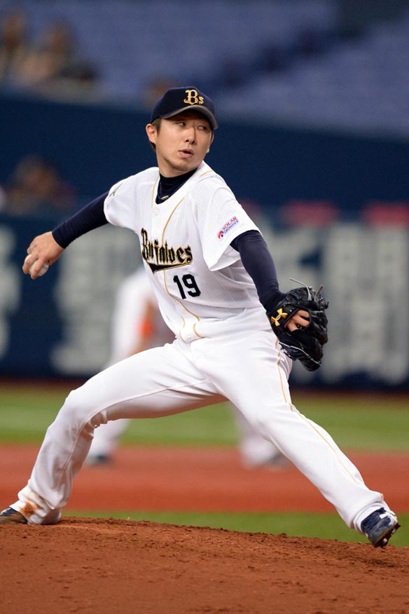 投手 金子千尋 4番 ジョーンズ 四球 外角の変化球を見送りフォアボールを選ぶ 1塁 |