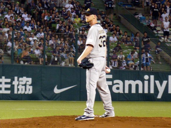 投手 岸 ピッチャー岸に代わって増田がマウンドにあがる |