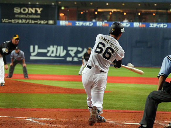 7番 山本 左安 2アウト1,2塁からレフトへのタイムリーヒット オ4-2ソ 1,2塁 ![]() 4
