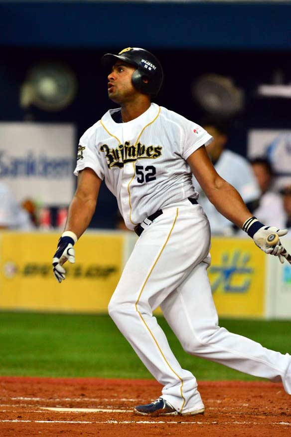 5番 バルディリス 左犠飛 0アウト満塁からレフトへの犠牲フライを放つ オ1-3ソ 1アウト1,2塁 ![]() 1