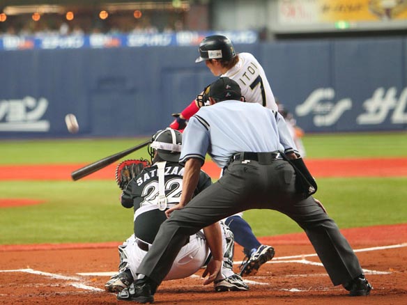 投手 佐藤達 投手交代:佐藤達→平野佳 守備変更:縞田→サード |