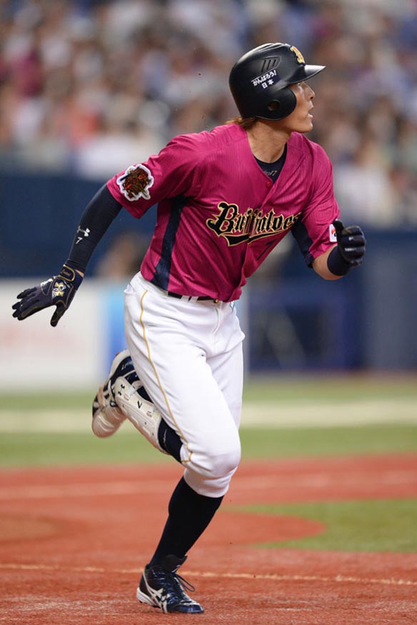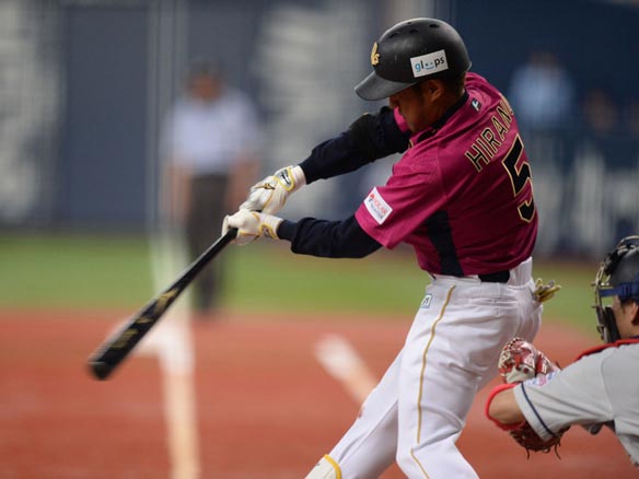1番 平野恵 左安 レフトへのヒットを放つ 1塁 |