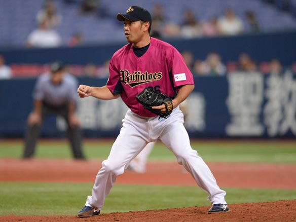 3番 栗山 四球 一度もバットを振ることなくストレートのフォアボールを選ぶ 1,2塁 |