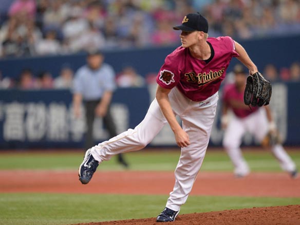投手 岸 5番 バルディリス 遊ゴ 外角のカーブを打つもショートゴロ 1アウト |