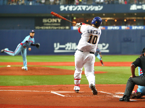 李大浩選手は逆転の一打を左前へ運ぶ!