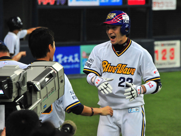 2番 伊志嶺 左中本 0-1から左中間へのホームランでロッテ先制! オ0-1ロ ![]() 0