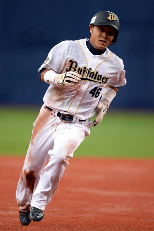 3番 糸井 中安 外角の真っ直ぐをセンターへ打ってヒット 1塁 |