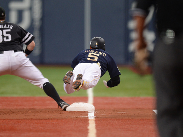 投手 巽 1番 平野恵 中安 センターへのヒットを放つ 1塁 |