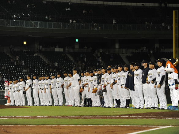 声援を送り続けた神戸のファンへ感謝の意を示すナイン