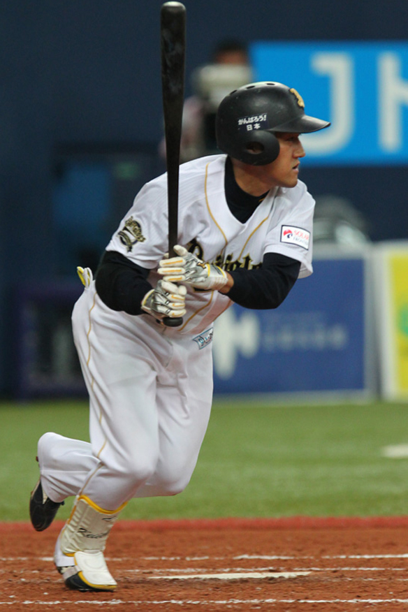 1番 平野恵 中安 ランナー2塁からセンターへのヒットを放つ 1,3塁 |