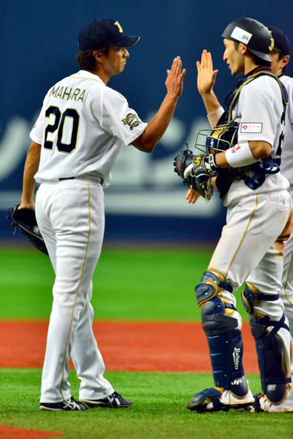 ピッチャー大塚に代わって乾がマウンドにあがる 中嶋聡がキャッチャーの守備につく 今浪がショートの守備につく 守備変更:鵜久森→レフト |