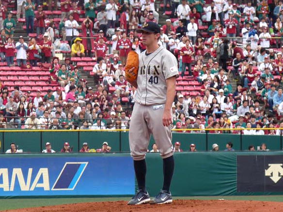 投手 ミルズ 9番 聖澤 四球 一度もバットを振ることなく四球を選ぶ 1塁 |