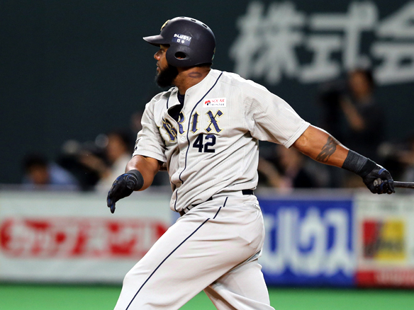 6番 ペーニャ 左本 カウント2-2からレフトスタンドへのホームランでオリックス勝ち越し! 日4-5オ ![]() 3