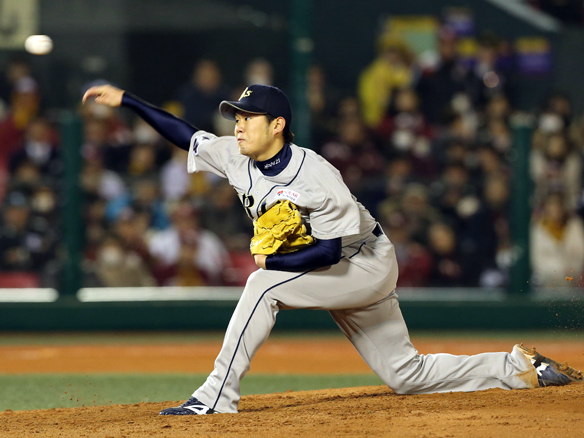 投手 西宮 4番 糸井 空三振 外角の変化球に空振り三振でバッターアウト 2アウト |