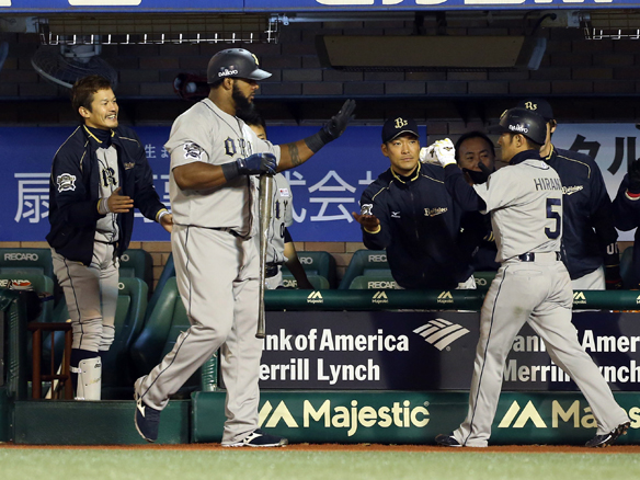 5番 ユーキリス 右中二 2アウト3塁の1-1からセンターへタイムリーツーベース! 楽2-0オ 2塁 ![]() 2