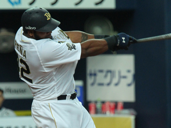 4番 ペーニャ 左本 2アウト1,3塁の0-1からスタンド上段に飛び込む3ランホームランを放つ オ4-0西 ![]() 4