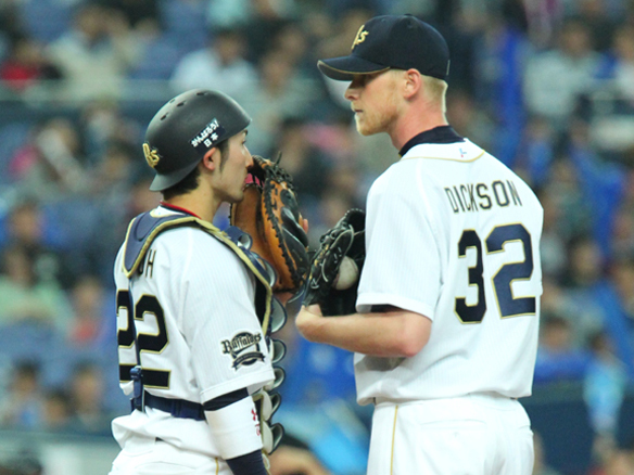 投手 ディクソン ピッチャーディクソンに代わって佐藤達がマウンドにあがる 駿太がセンターの守備につく 守備変更:平野恵ライト→セカンド 守備変更:糸井センター→ライト 守備変更:ベタンコートセカンド→ファースト |