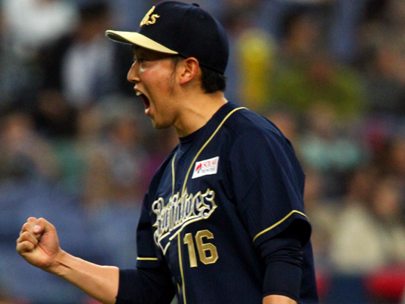 9回を締めた平野佳投手はガッツポーズ!!