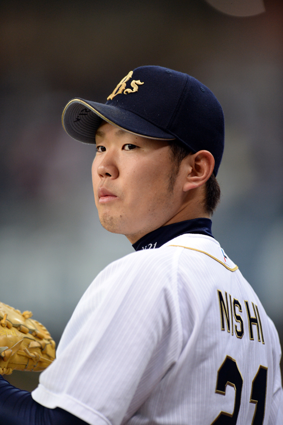 投手 西 5番 角中 一ゴ 外角のフォークボールを打つもファーストゴロ 1アウト |