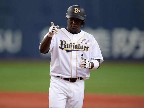 ヒットを放ちベンチへ向けてポーズを決めるベタンコート選手