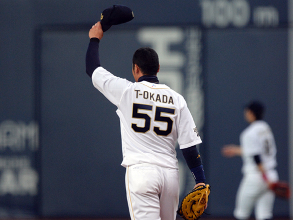 投手 齊藤勝 5番 T-岡田 空三振 空振りの三振を喫する 2アウト |