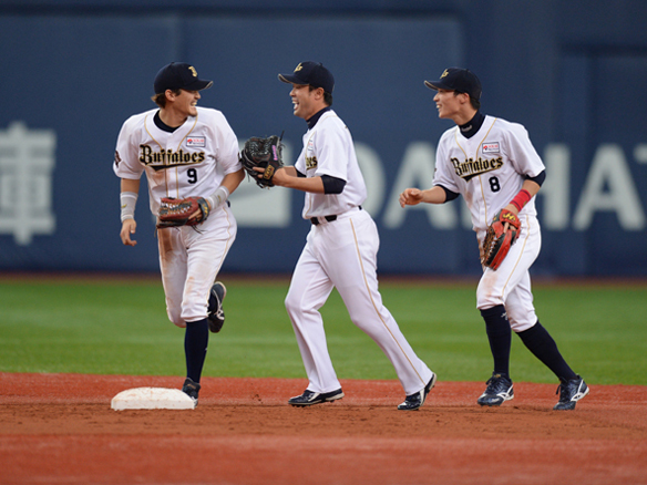 5番 ミランダ 四球 外角のチェンジアップを見送りフォアボール。オリックス、満塁のピンチをまねく 満塁 |
