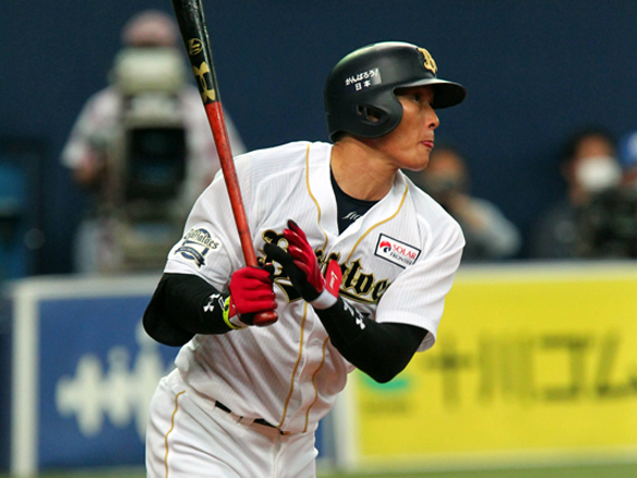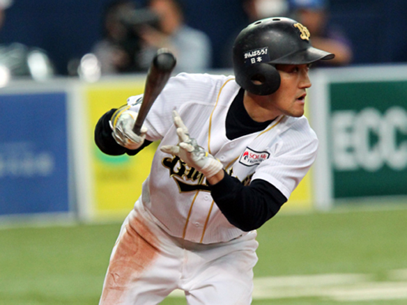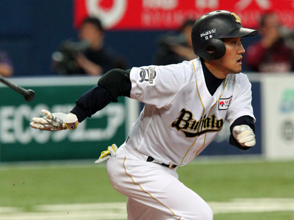 3番 糸井 中安 センターへのヒットを放つ 1塁 |