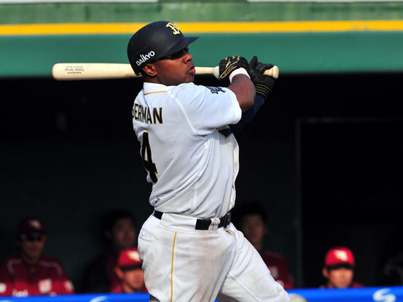 ヒットで出塁するヘルマン選手