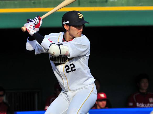 6番 T-岡田 左安 0アウト1,3塁の2-1からレフトへのタイムリーヒット オ7-1楽 1,2塁 ![]() 7