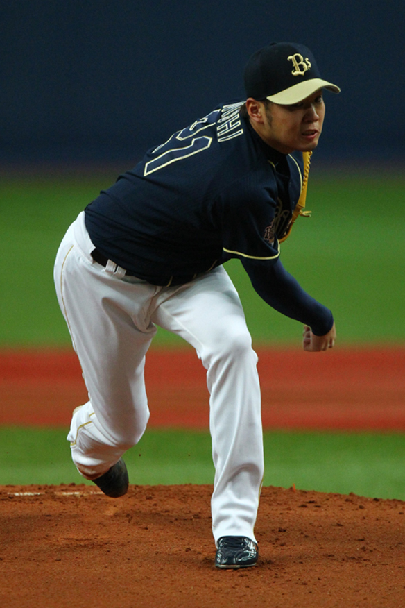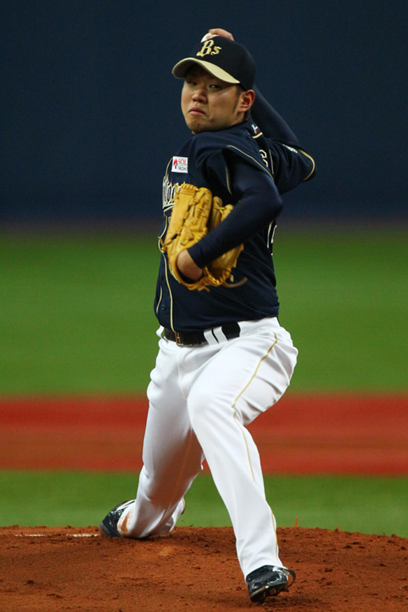 投手 西 4番 李大浩 右飛 外角の変化球を打つもライトフライ 1アウト |