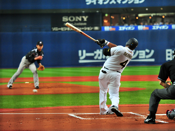 投手 涌井 1番 ヘルマン 左安 レフトへのヒットを放つ 1塁 |