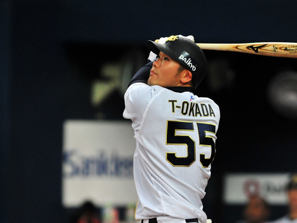 4番 T-岡田 左安 1アウト1,3塁からレフトへの先制タイムリーヒット! オ1-0ロ 1,2塁 ![]() 1