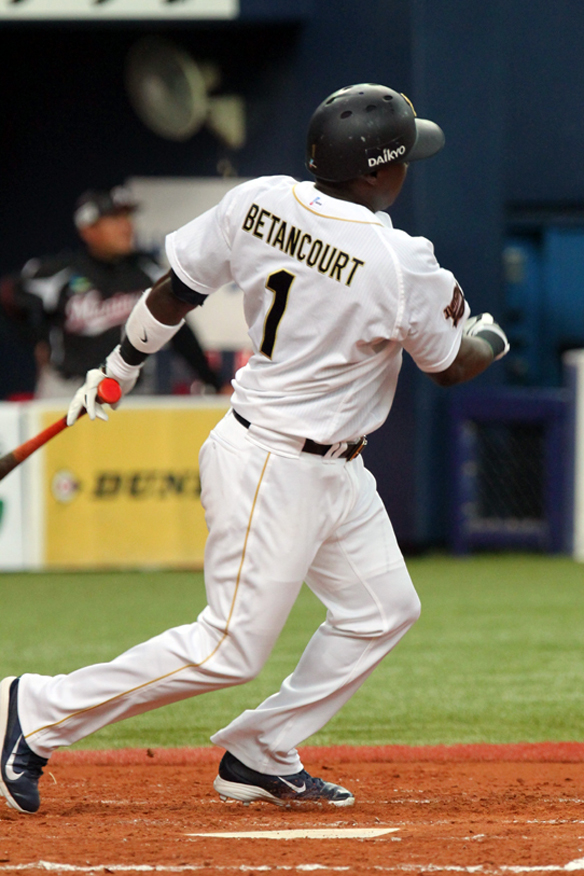 7番 ベタンコート 左翼二 1アウト2塁の3-2からレフトへのタイムリーツーベースでオリックス勝ち越し! オ2-1ロ 2塁 ![]() 2