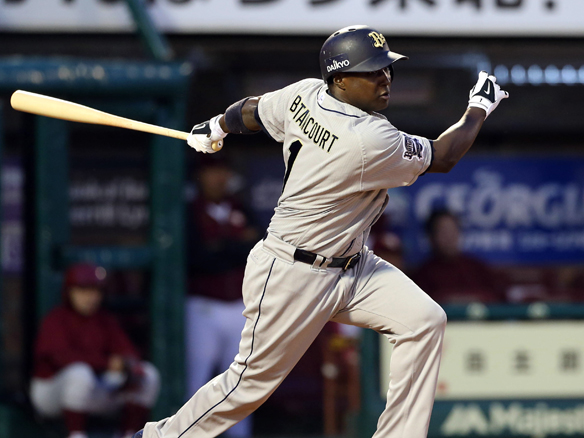 7番 ベタンコート 左安 レフトへのヒットを放つ 1,2塁 |
