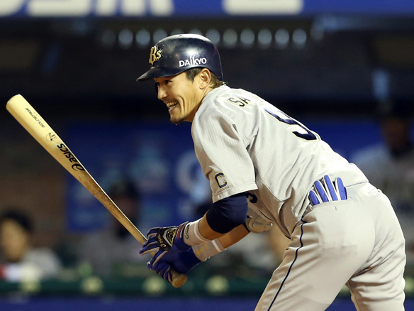 投手 ファルケンボーグ 3番 糸井 中安 センターへのヒットを放つ 1塁 |