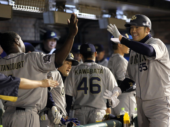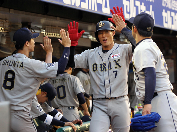 3番 糸井 中安 ランナー1,3塁の1-0からセンターへのタイムリーヒット 楽2-6オ 1,2塁 ![]() 2