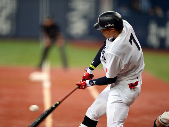 9番 山崎 左安 1アウト3塁の2-1からレフトへのタイムリーヒット オ7-2ソ 1塁 ![]() 7