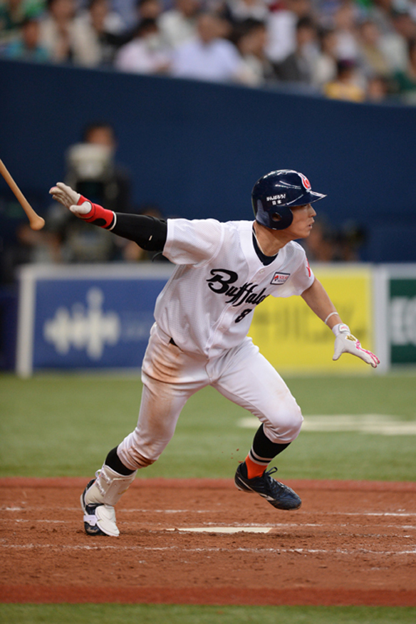 4番 李大浩 中安 センターへのヒットを放つ 1塁 |
