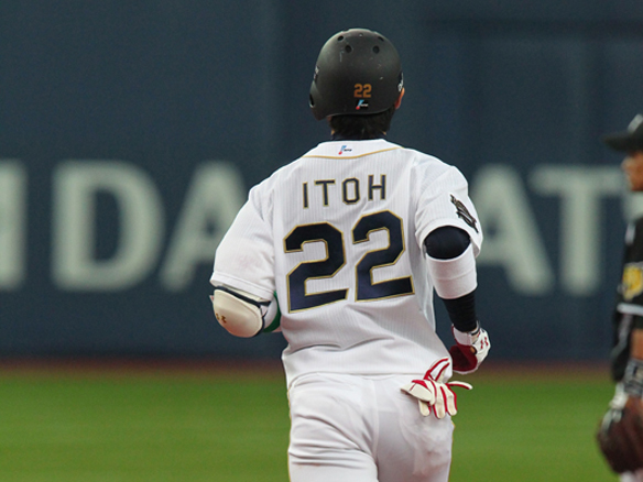 今季初ホームランを放ちベースを回る伊藤選手
