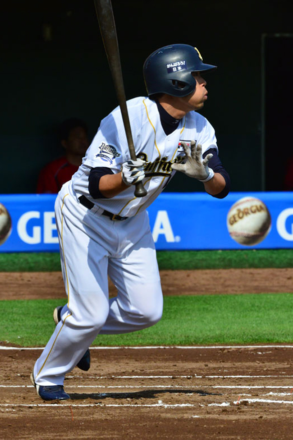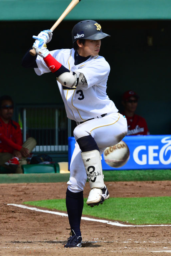 6番 小窪 中安 センターへのヒットを放つ 1塁 |