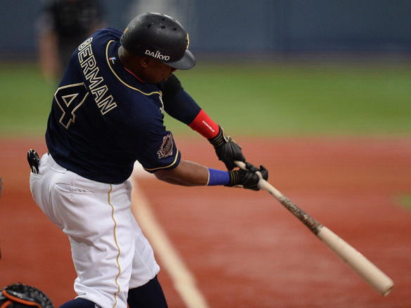 1番 ヘルマン 空三振 一発出れば逆転サヨナラの場面で空振りの三振を喫する ゲームセット |