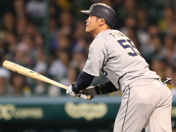 ライト前ヒットを放ったT-岡田選手